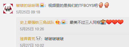 “最美不过三人同框”、“最佳代言人TFBOYS”、“为了TFBOYS买单!”,相信三人看到这些留言,心里一定特别温暖!