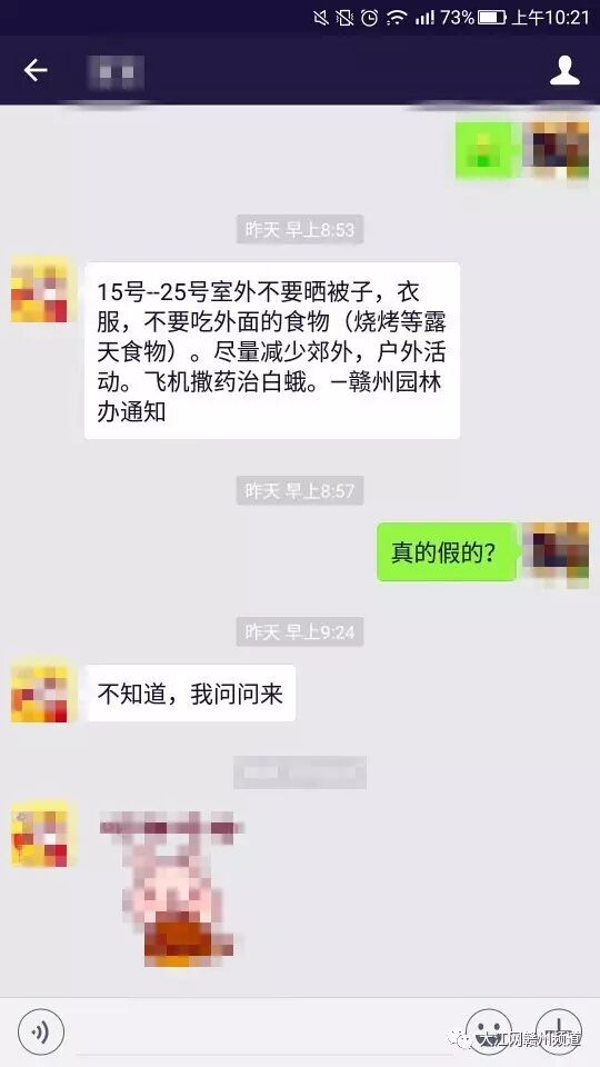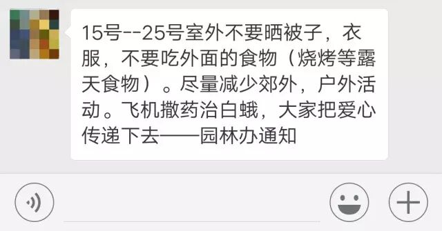 近日,一条关于“飞机撒药治白蛾期间,不要晾晒被子,减少户外活动”的消息在微信群、朋友圈,以及微博迅速传播。