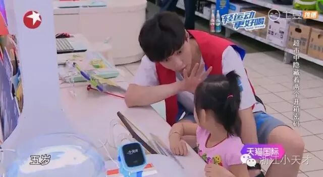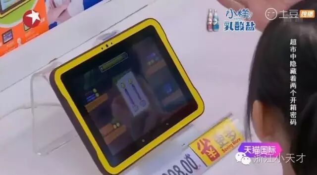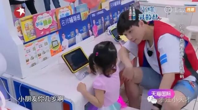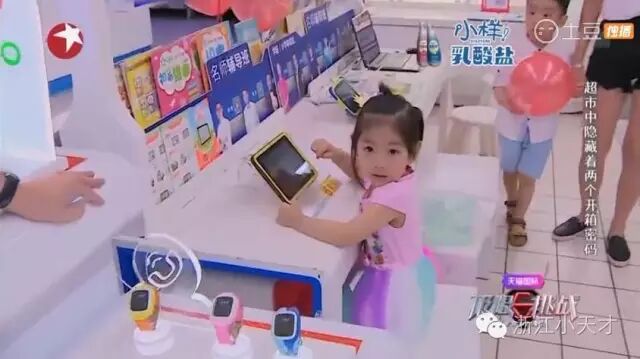 接着往下看哈!张艺兴同学已经走进小天才专柜啦,有个超级萌的小女孩在玩小天才儿童平板哦!