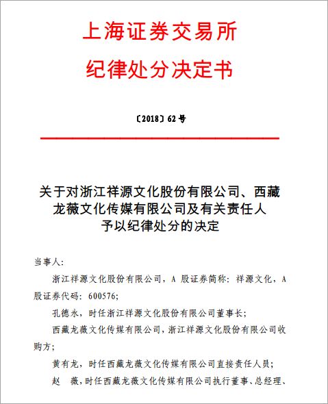 上海证券交易所发布纪律处分决定书