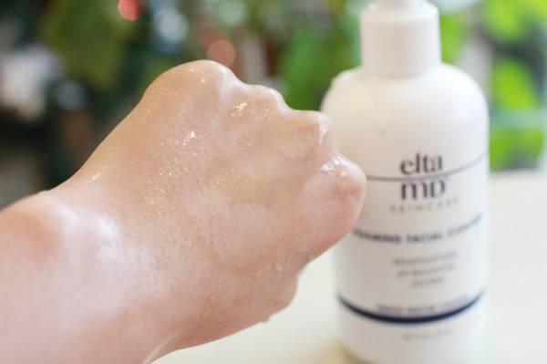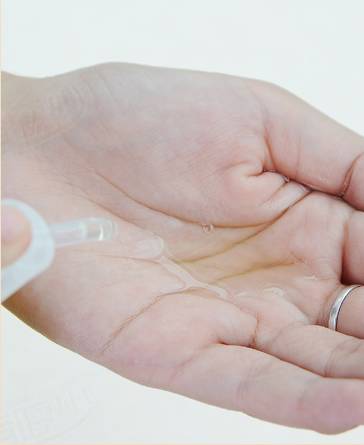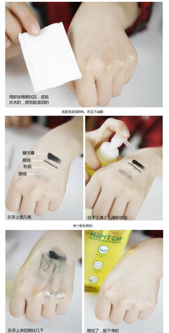 然后挤出1枚硬币大小的卸妆油,涂抹在脸上