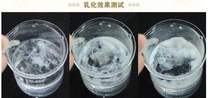 将黑龙堂卸妆油放于水中,乳化能力非常强!