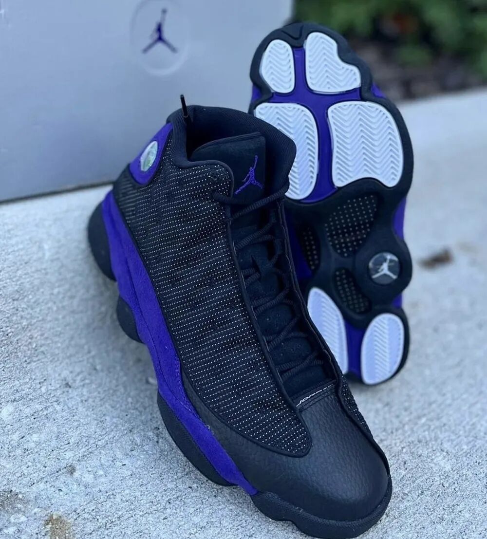 全新配色 Air Jordan 13 “Court Purple” 采用黑色皮革、磨砂皮以及网面材质覆盖。