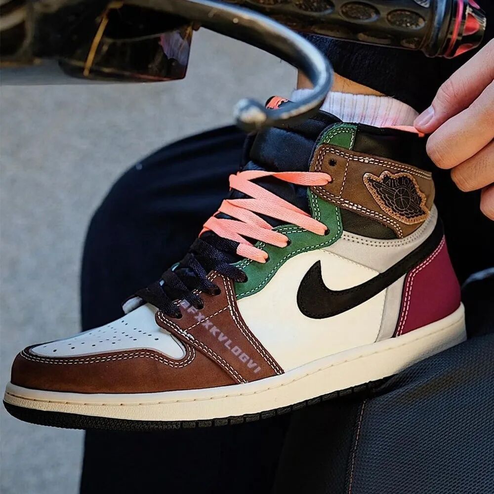 棕色的鞋头和鞋帮看起来还有点「小倒钩 」Air Jordan 1 的感觉,尽管颜色不少,但视觉上并没有太过花哨。