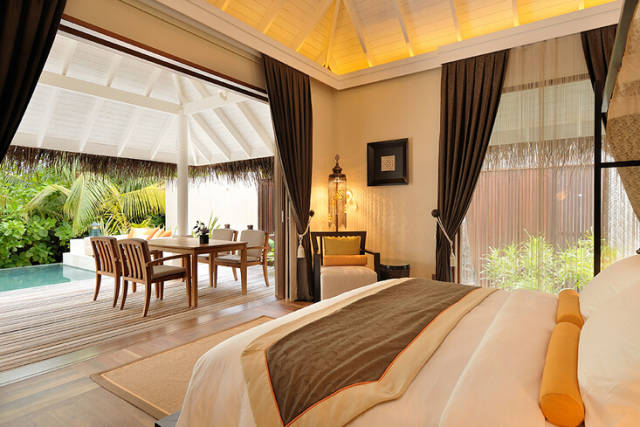 偌大的套房沿海滩而建,清澈的泻湖一览无遗。套房的起居空间宽敞,并是有私人大阳台和游泳池,以及适合享用浪漫私人晚餐的花园和直达海滩的通道。