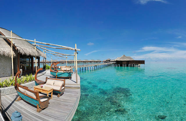建在泻湖上的水上别墅环境清幽,宾客可以躺在吊床静听海浪拍岸,尽情舒展身心,别墅空间宽敞,设有私人户外阳台,水上吊床,泳池和直达泻湖的通道,饱览一望无际的海景。