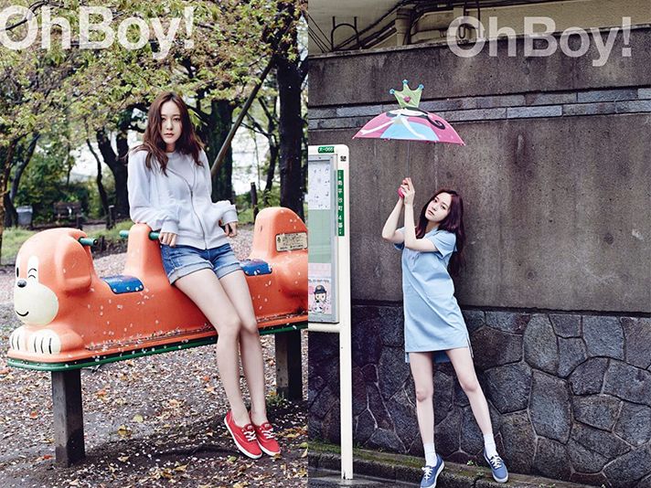 回忆起来郑秀晶以前杂志照、封面照都很nice~长腿霸屏的感觉真的很棒,身材比例也是很好,随便一件休闲外套配牛仔短裤就很棒。