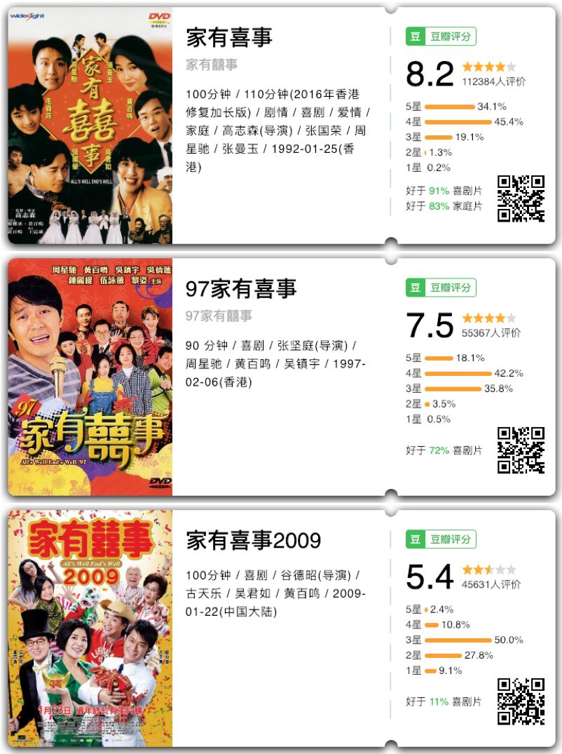 [家有喜事]系列评分变化:92版依旧经典,09年版却惨不忍睹
