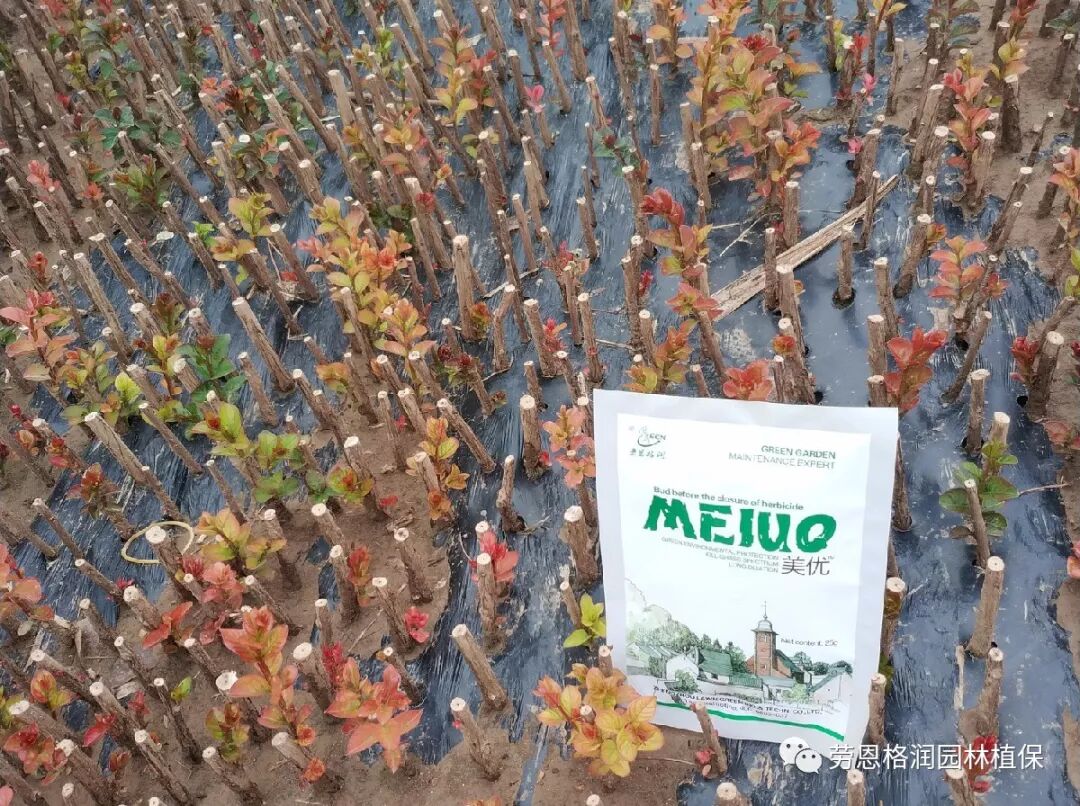 推荐使用格润“美优”或“圃乐封”。成活苗圃中,人工除草后,喷施美优或圃乐封,有效防除多数杂草。