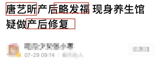 7月29日,产后的唐艺昕罕见露面!独自去中医养生馆做修复恢复身材。