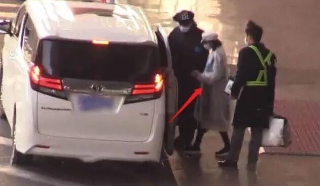 离开医院时,因为随身物品太多,唐艺昕也只好让医院的工作人员帮忙提到车前。