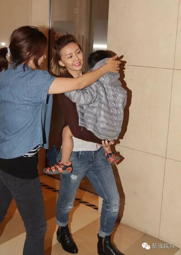 出门遇上狗仔,也是这样一直紧护儿子头部,避免被偷拍。