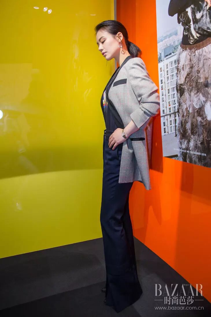 作为金马奖影后得主,马思纯不止演技杠杠的。衣品也不甘示弱。身穿暗格子西装外套搭配喇叭腿长裤。大女人气质穿透屏幕~