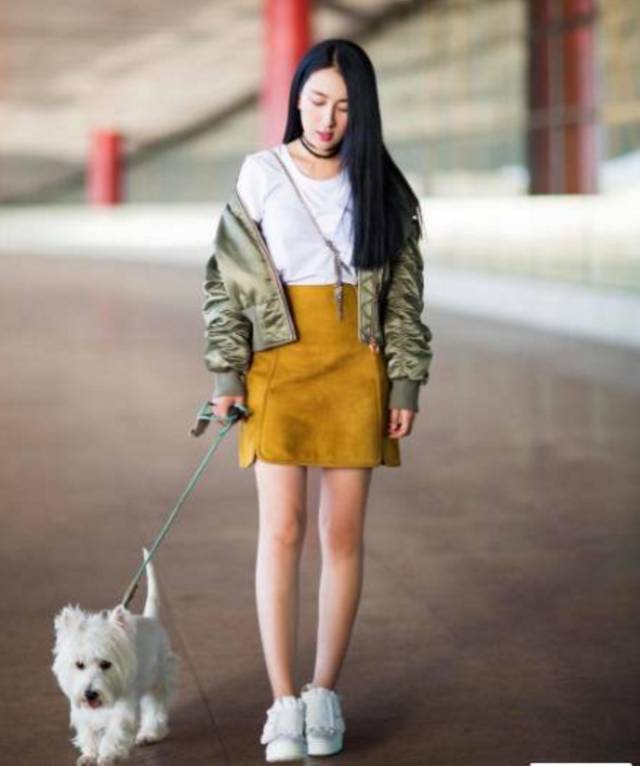 比如马苏,她直接在机场开始遛狗啦,这操作一下就把街拍难度提上去了。