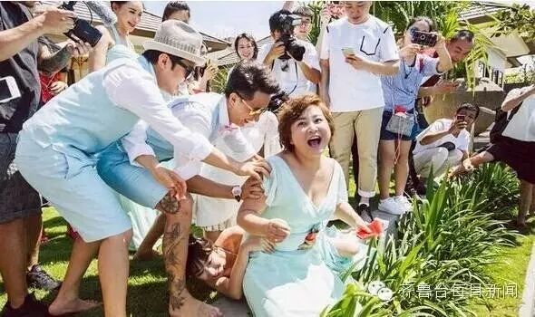 差点被扔进水里的柳岩紧紧抱住贾玲的腰