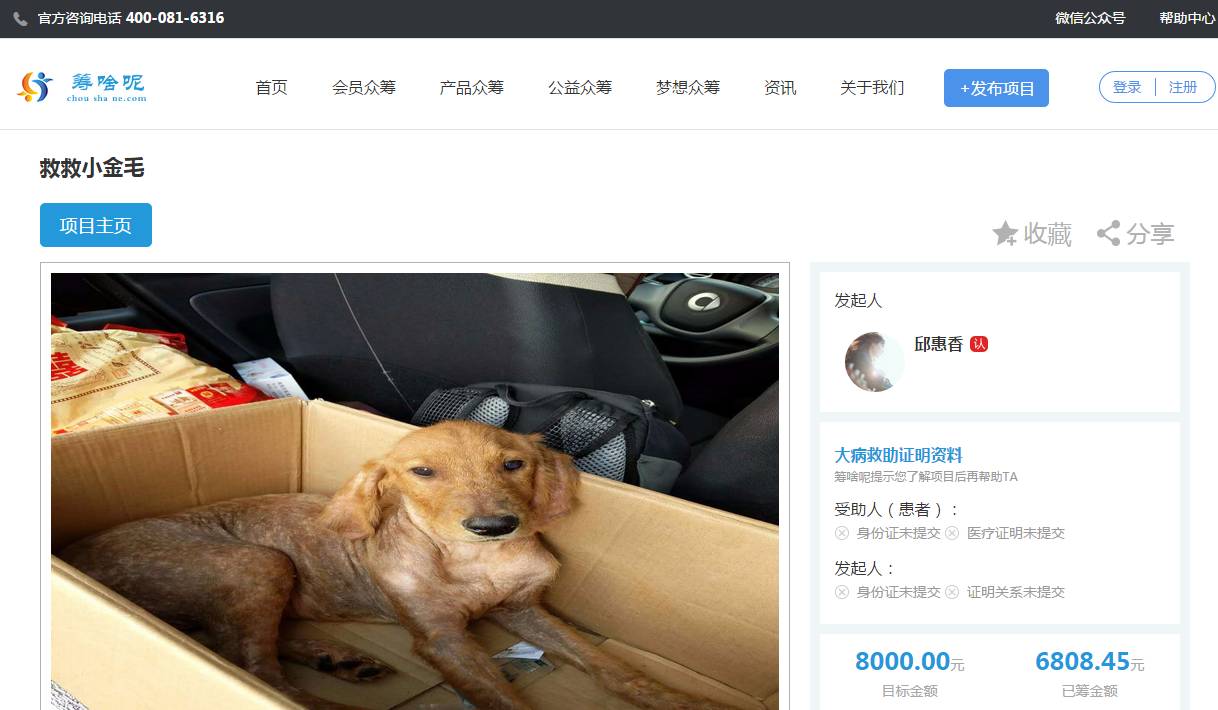 检测结果,没有狗瘟,中度贫血,皮肤病,左后腿骨折,右后腿脱臼并骨折,需要尽快手术治疗。麻烦的是,手术费真不少,经咨询,多家医生手术费用最少也要8000元—10000元,可能还不够。