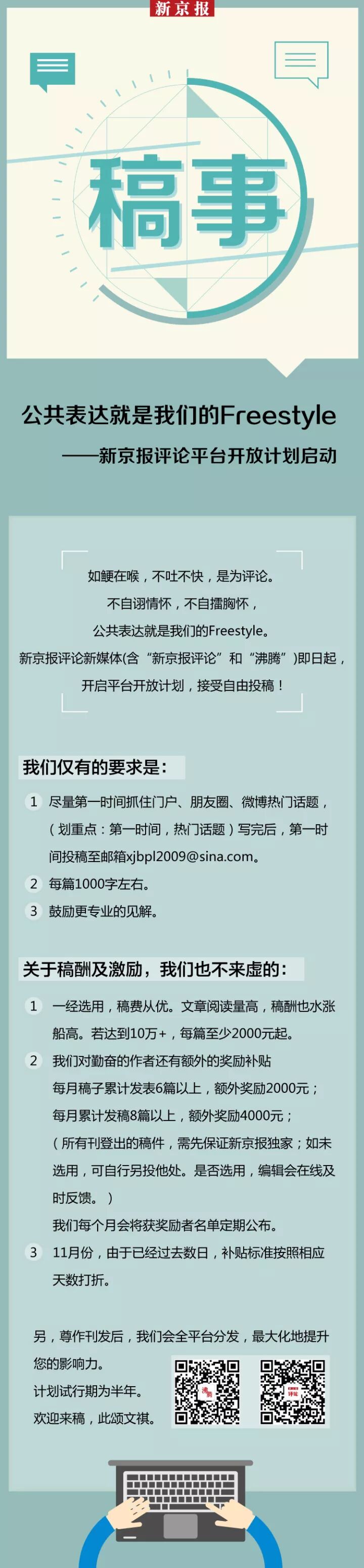 特别提示:留言如入选新京报A03版“微言大义”,请在后台回复您的“真实姓名+银行卡号”