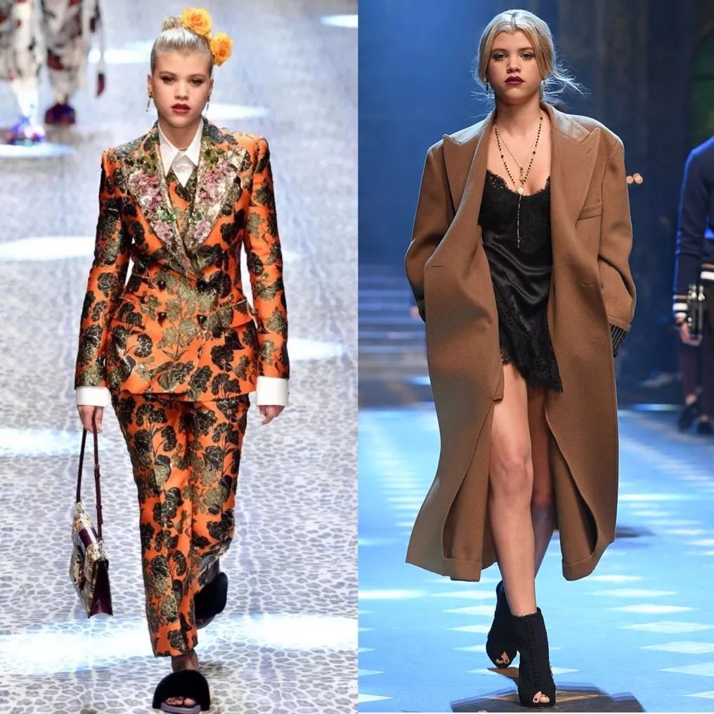 Dolce&Gabbana 2017秋冬邀请了各种星二代,网红,油管博主比如Cameron Dallas,史泰龙三个女儿等 参与到大秀当中,这其中Sofia Richie也作为社交红人出现在秀场上。