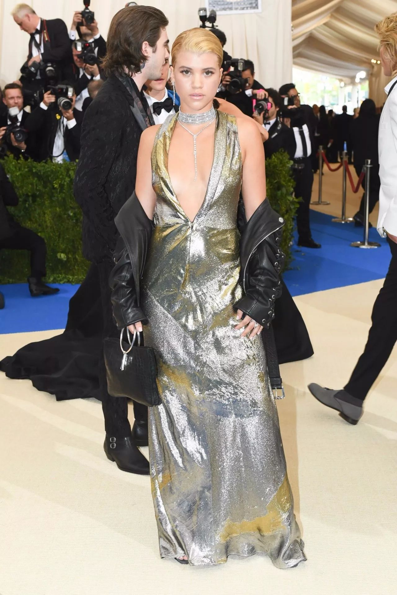 去年Met gala,和Topshop团队一起出席的Sofia,用银色长裙和皮夹克的搭配,成就了她青春的朝气和机车风。