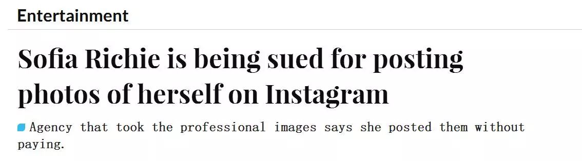 如今,几乎每个人都在ins上发自拍,秀美照,而19岁星二代模特Sofia richie就因为在ins上发自己的照片被起诉了。