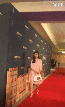 冰冰穿了一身粉色的及膝裙,瘦下来之后看起来特别的端庄优雅吧,但其实在台下她是这样子的……