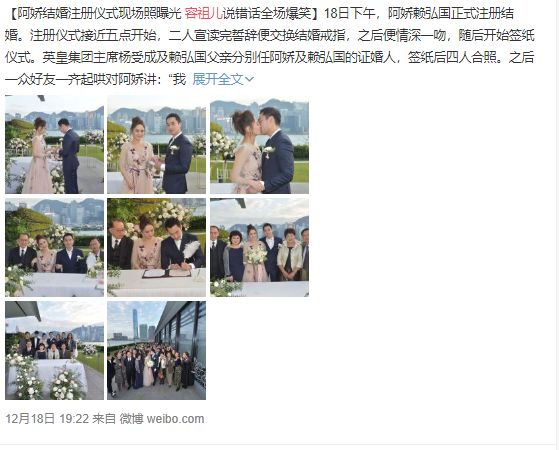 最近娱乐圈的糖齁甜齁甜的,18日下午,钟欣潼赖弘国正式注册结婚了,容祖儿也是到现场送出最真挚的祝福“嫁出去的水等于泼出去的女儿”引来全场大笑。