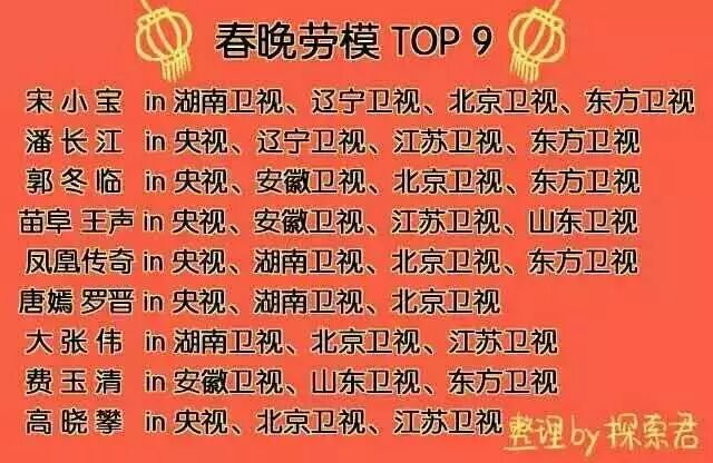 小编为大家整理出了 各家春晚的红人们!!!