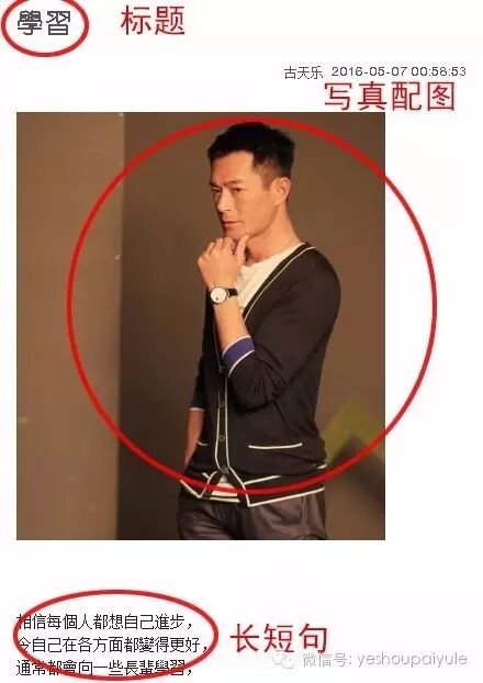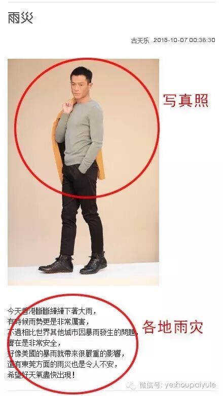 看完以上的微博,你能不能想象有这样一个明星,几乎每天都认认真真写微博,他的微博格式都是长微博,有标题,并且内容只有三四行,对了,还有几张一百年不变的配图——是的,这个人就是古天乐。
