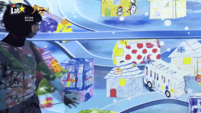 teamLab展之所以让这么多人疯狂,就是因为刚刚花花提到的沉浸式体验。你在看展时的每一个动作都会创造新的场景,你也可以天马行空地发挥你的想象,创造一座房子一个花园……