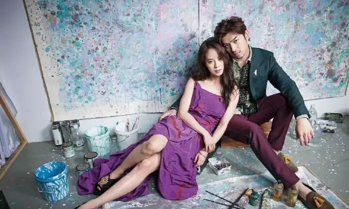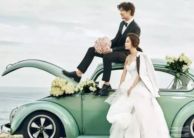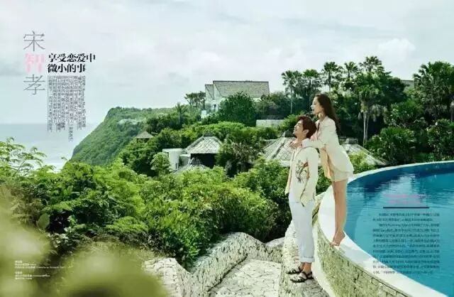 在巴黎拍摄的这组画报中,宋智孝与陈柏霖展现了不亚于实际情侣的多情氛围。宋智孝身穿纯白色婚纱,美丽又端庄,女人味十足。她挽着假想老公陈柏霖的胳膊,绽放出非常明朗的笑容。而陈柏霖的视觉感更是夺人眼球,正式的燕尾服突出了他优越的身材比例,举着捧花露出了幸福的一面。
