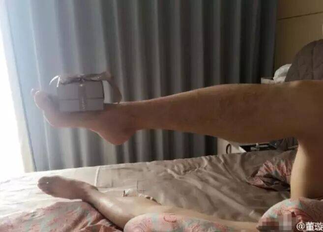 依偎在怀里的照片也就算了,还有一张最辣眼!高云翔躺在床上,造型奇特的用脚送上结婚5周年礼物!