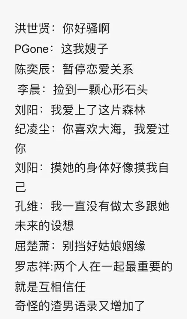 娱乐圈罗志祥屈楚萧PGone等渣男语录出刊