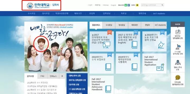招生处官网的头图也是黄旼炫,帅哥对你说“请报考仁荷大学”啦!