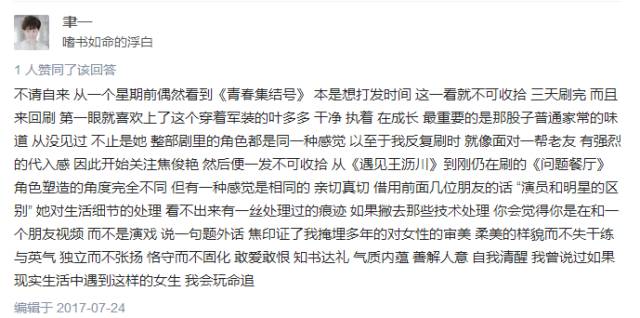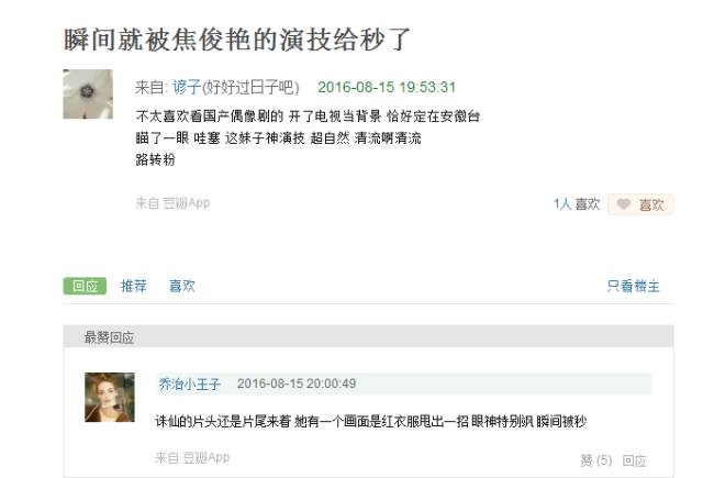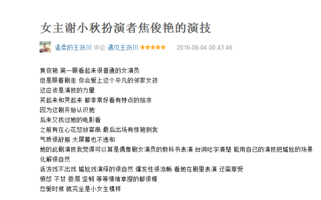 对比起现在的市场风气,真心希望像焦俊艳这样走心的演员还能再多一些。