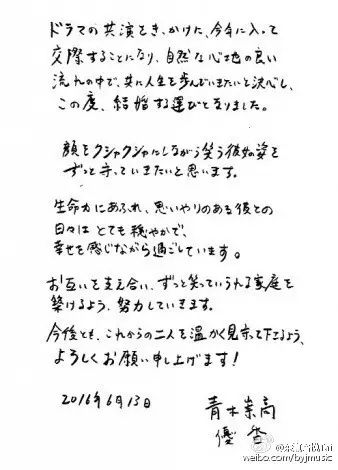 日本演员優香将和青木崇高结婚啦~!今天两人通过事务所联名正式公布了这一消息,目前两人已经同居,婚礼和宴会未定。