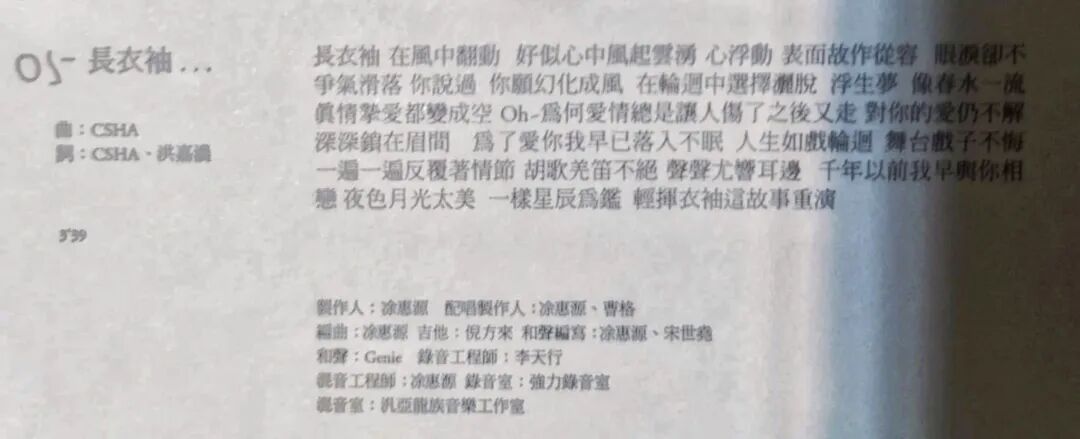 《长衣袖》,Csha(陈思涵)、洪嘉浓作词,Csha(陈思涵)作曲,涂惠源编曲、制作,涂惠源、曹格配唱制作,倪方来吉他演奏,涂惠源、宋世尧和声编写,卓文萱和声。Csha(陈思涵)是一名台湾创作女歌手、演员,音乐制作人,大一初试啼声就拿下辅大青韵奖独唱冠军的Csha(陈思涵),是歌唱比赛的常胜军,拥有穿透力十足与感人肺腑的歌声,稳健的台风与吸引人目光的舞台魅力,十足是一颗亮眼的明日之星。Csha(陈思涵)曾以一首卓文萱的《长衣袖》,展现她创作的细腻而坚具流行与独特性。Csha(陈思涵)第一首自己的创作《雨不停》发表后,在各大入口网站与PTT询问板上掀起一股疯狂搜寻风潮。2009年Csha(陈思涵)首次发表第一张个人EP《寄居蟹》,她还是钢琴为主轴的实力派创作歌手。Csha(陈思涵)声音具有穿透力且附有生命,在出道后,除了歌唱事业外,也参与偶像剧演出,并参与多项幕后制作、专业和声与担任配唱制作人。2021年Csha(陈思涵)创立了独立音乐厂牌“希望之夏音乐创意有限公司”,2022年Csha(陈思涵)的创作专辑《动物直觉》就是从“希望之夏音乐创意有限公司”发行的,融合各类型的曲风,让人耳目一新。Csha(陈思涵)给别人创作的歌曲也不少,2015年刘德华在央视春晚演唱的《回家的路》就是Csha(陈思涵)作曲的,伊能静的《爱的练习本》、萧闳仁的《神探伽利略》、胡灵的《手牵手》《当某人又提起》、纪乃菡的《还好你在》、安那的《我无法懂得》、陈芳语的《再爱我一天》、马思慧的 《不如不爱》、钟明轩的《你喜欢不是我喜欢》、丁当的《Beat As One》、王瑜莹的《Summer Time》、圆圆的《Boom Boom Queen》都是Csha(陈思涵)创作的。《长衣袖》这首歌以其独特的古风韵味与现代情感的融合,构建了一个跨越时空的情感世界,让每一位聆听者都不禁沉醉其中,反思爱情的真谛与人生的轮回。“长衣袖在风中翻动,好似心中风起云涌”,歌曲开篇即以细腻的笔触描绘了一幅古典画面,长袖轻舞,风中翻飞,仿佛是内心情感的直接外化,既展现了古典美人的温婉与哀愁,又巧妙地映射了现代人在爱情中的波澜起伏。卓文萱那略带沙哑却又不失温柔的嗓音,将这份复杂的情感演绎得淋漓尽致,让人仿佛能看见那位身着长衣的女子,在历史的尘埃中缓缓走来,带着一世的情愫与不舍。“你说过你愿幻化成风,在轮回中选择洒脱,浮生梦像春水一流,真情挚爱都变成空。” 这几句歌词,不仅是对古代爱情故事的悲叹,也是对现代人情感困境的深刻洞察。爱情,这个自古以来便被无数诗人墨客歌颂的主题,在《长衣袖》中却显得格外苍凉与无奈。卓文萱通过她深情的演绎,让我们感受到,即便是在轮回的洪流中,人们依然难以逃脱情感的束缚,那些曾经的海誓山盟,最终都可能化作一场空梦,只留下无尽的遗憾与哀伤。“人生如戏轮回,舞台戏子不悔,一遍一遍反覆着情节。” 歌曲转入对人生舞台的反思,戏子们在舞台上重复着相同的情节,如同人生中的一次次轮回,每一次都全力以赴,每一次都无悔于心。这种对命运的坦然接受与对爱情的执着追求,构成了《长衣袖》中最为动人的部分。而“胡歌羌笛不绝,声声尤响耳边,千年以前我早与你相恋”则进一步升华了这一主题,将时空的界限打破,让爱情超越了生死的界限,成为了一种永恒的存在。“夜色月光太美,一样星辰为鉴,轻挥衣袖这故事重演。” 歌曲在结尾处回归到了最初的宁静与美好,夜色中的月光与星辰成为了这段跨越时空爱恋的见证者。卓文萱用她那轻柔而又坚定的声音,告诉我们,即便是在最孤独的时刻,也有星光相伴,而那份深埋心底的爱,无论经历多少轮回,都将如星辰般璀璨,永不熄灭。《长衣袖》不仅是一首歌曲,它更像是一幅细腻的情感画卷,引领我们穿梭于古今之间,体验着爱情的甜蜜与苦涩,感受着人生的无常与轮回。它让我们思考,是什么让爱情如此令人向往又令人畏惧?又是什么让我们在轮回中不断追寻,即使遍体鳞伤也不言放弃?或许,正是这份对爱的执着与对美好生活的向往,才让我们在每一次的“长衣袖”舞动中,都能找到属于自己的那份感动与力量。