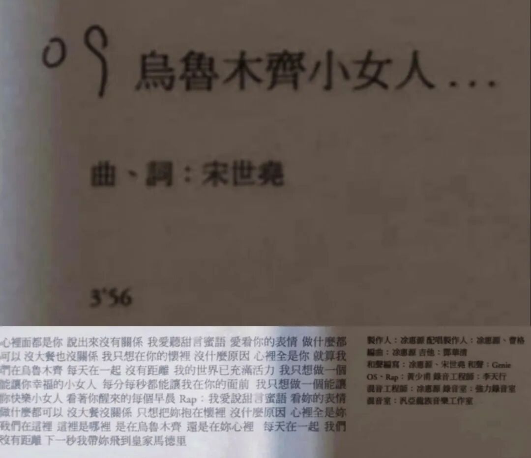 《乌鲁木齐小女人》,宋世尧作词、作曲,涂惠源编曲、制作,涂惠源、曹格配唱制作,邓华清吉他演奏,涂惠源、宋世尧和声编写,卓文萱和声,黄少甫独白、说唱。邓华清是内地的吉他手,1997年在北京担任多支乐队的主音吉他,并同时进修吉他课程,2001年~2006年他回广州担任录音乐手与编曲工作,2007年~2012签约英皇娱乐有限公司参与演出,2013年约满回到内地参与了许多电视节目、大小晚会演唱会歌迷会伴奏录音与编曲工作,拥有丰富的演出录音编曲和教育经验。有关邓华清我问过涂惠源老师,他说是宋世尧向涂惠源老师推荐的吉他手。至于黄少甫,涂惠源老师说没有印象,可能是吉他手,那个年代网络讯息不太发达,已经查不到何许人也了,可能转行了。《乌鲁木齐小女人》以简单直白却又深情款款的歌词,搭配轻快愉悦的旋律,勾勒出一幅幅温馨浪漫的爱情画卷,让人不禁沉醉其中,思考爱情的真谛,为我们呈现了一个关于爱情、关于陪伴、关于幸福的美好故事。“心里面都是你,说出来没有关系,我爱听甜言蜜语,爱看你的表情。”歌曲开篇,卓文萱用她那温柔细腻的嗓音,将一位沉浸在爱情中的小女人形象生动地展现出来。这种毫不掩饰的情感表达,不仅让人感受到爱情中的甜蜜与真挚,更触动了每一个听众内心深处对于纯真爱情的向往。在快节奏的现代生活中,这样直接而纯粹的爱情宣言显得尤为珍贵,它提醒我们,无论外界如何喧嚣,内心那份对爱的渴望与追求始终如一。“做什么都可以,没大餐也没关系,我只想在你的怀里,没什么原因,心里全是你。”歌词中,卓文萱以一种近乎孩童般的纯真,表达了对于爱情最质朴的理解——在爱人的怀抱中,即使是最平凡的日子也充满了幸福。这种超越物质追求的爱情观,在当今物质至上的社会背景下,无疑是一股清流,引人深思。它让我们意识到,真正的幸福不在于外在的富足,而在于内心的满足与彼此间的深情厚意。“就算我们在乌鲁木齐,每天在一起没有距离,我的世界已充满活力。”这一句不仅巧妙地融入了歌曲标题中的地理元素,更寓意着爱情能够跨越地域的界限,让两颗心紧紧相连。乌鲁木齐,这个遥远而神秘的地方,在这里成为了爱情力量的见证。它告诉我们,无论身处何方,只要心中有爱,就能克服一切困难,让生活充满色彩与活力。黄少甫的Rap部分,为这首歌曲增添了更多的趣味性和互动性。“我爱说甜言蜜语,看你的表情做什么都可以……”这段Rap不仅与主歌部分形成了良好的呼应,还以一种更加直接、活泼的方式表达了爱意,使得整首歌曲的情感层次更加丰富多元。特别是“下一秒我带你飞到皇家马德里”这一句,更是将爱情的浪漫与梦想完美结合,让人在欢笑中感受到爱情的无限可能。《乌鲁木齐小女人》以其独特的魅力,成功捕捉了爱情中最纯粹、最动人的瞬间。它不仅仅是一首歌,更是一次关于爱情、关于幸福的深刻探讨。在这个充满变数的世界里,愿我们都能像歌曲中的小女人一样,勇敢地表达爱意,珍惜身边人,无论身在何处,都能拥有一份简单而真挚的幸福。因为,爱的真谛,从来都不在于你我之间的距离,而在于那份愿意为对方成为更好自己的决心与陪伴。