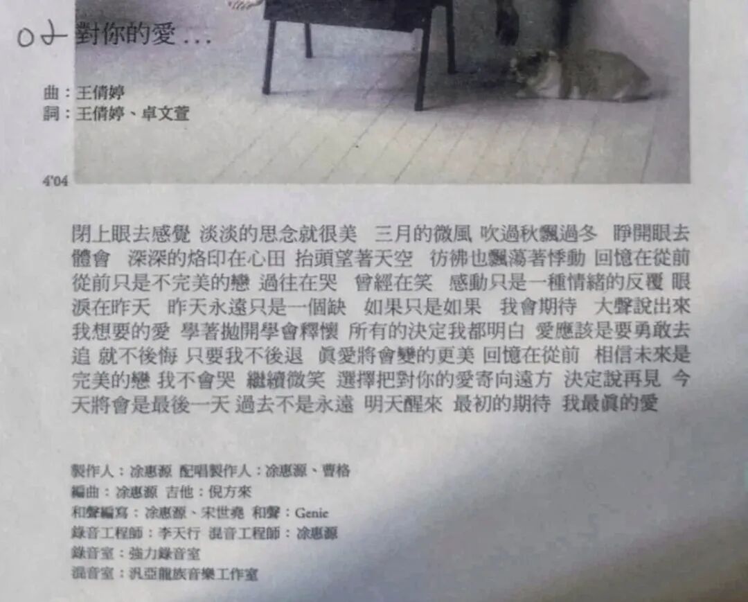 《对你的爱》,王倩婷、卓文萱作词,王倩婷作曲,涂惠源编曲、制作,涂惠源、曹格配唱制作,倪方来吉他演奏,涂惠源、宋世尧和声编写,卓文萱和声,杨谨华、洪小铃、卓文萱、张天霖主演的电视剧《恋爱女王》插曲,柯佳嬿、张立翔、莫子仪、柯宇纶、庹宗华主演的电影《一年之初》主题曲。王倩婷是台湾女音乐人,她的资料和作品我没有找到很多,只知道2009年许慧欣的《平凡的浪漫》是王倩婷作曲的。《对你的爱》以细腻的笔触描绘了一段关于爱情、成长与释怀的心路历程,这首歌不仅是卓文萱作为20岁小女人对前男友深情的怀念,更是对过往爱情勇敢回望、无悔前行的坚强宣言,拥有独特的疗愈力量。对于20岁早熟的卓文萱来说内心其实是脆弱的,因为15岁就出道发行第一张专辑,因为工作的关系要自己习惯面对一切,5年来从小女孩转变小女人对卓文萱来说是另一个开始,而《对你的爱》是卓文萱自己的首度创作,将自己对于过往的爱用文字描述出来,让卓文萱自己在录音时还在录音室哽咽哭泣,也让所有人都吓一跳,还以为发生什么事情,而当晚哭过之后卓文萱再度诠释更让制作人涂惠源赞赏有嘉。不但如此,这首歌也被台北电影节百万首奖《一年之初》导演郑有杰指定为主题曲,更让导演郑有杰在电影《一年之初》记者会上被卓文萱现场演唱的歌声感动落泪。“闭上眼去感觉,淡淡的思念就很美,三月的微风,吹过秋,飘过冬。”歌曲的开篇,便以一种温柔而略带忧伤的语调,将听众带入了一个充满回忆的空间。卓文萱用她那清澈而富有感染力的声音,缓缓诉说着对过去爱情的细腻感受。闭上眼,仿佛能穿越时空,感受到那份虽已远去却依然美丽的思念,它超越了季节的更迭,成为心中永恒的风景。“睁开眼去体会,深深的烙印在心田,抬头望着天空,仿佛也飘荡着悸动。”随着旋律的推进,歌曲的情感逐渐升温。卓文萱通过“睁开眼”这一动作,将我们从美好的回忆拉回现实,面对那份深刻烙印在心间的爱。天空的广阔与悸动的飘荡,象征着内心世界的波澜壮阔,是对那段感情深刻而复杂的情感体验。“回忆在从前,从前只是不完美的恋,过往在哭,曾经在笑,感动只是一种情绪的反覆。”歌曲进入副歌部分,卓文萱坦诚地表达了对过去不完美恋情的接受与反思。泪水与笑声交织,感动与失落并存,这是爱情最真实的模样。然而,她并未沉溺于过去,而是选择“学着抛开,学会释怀”,展现出一种成熟与坚强。“爱应该是要勇敢去追,就不后悔,只要我不后退,真爱将会变的更美。”这是歌曲的核心精神所在,卓文萱用坚定的语气告诉我们,真爱需要勇气去追求,即使结果未知,也要勇往直前,因为只有这样,才能无愧于心,让真爱绽放出更加绚烂的光彩。“回忆在从前,相信未来是完美的恋,我不会哭,继续微笑,选择把对你的爱寄向远方。”歌曲接近尾声,卓文萱以一种释然而积极的态度,向过去告别,向未来展望。她不再为过去的遗憾而哭泣,而是选择用微笑面对生活,将对你的爱化作一股力量,寄向远方,期待在未来的某一天,能遇到那份更加完美的爱情。《对你的爱》不仅是一首关于爱情的歌曲,更是一次心灵的洗礼。卓文萱以其独特的嗓音和真挚的情感演绎,让我们看到了一个20岁小女人在面对爱情时的勇敢与坚强。她教会我们,无论爱情的结果如何,都应该勇敢去爱,去体验,去成长,因为只有这样,我们才能拥有更加丰富多彩的人生。这首歌曲,无疑具有强大的疗愈力量,让每一个听过它的人,都能从中找到属于自己的那份勇敢与释怀。