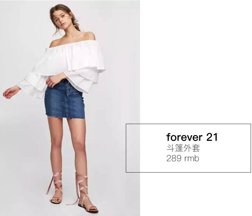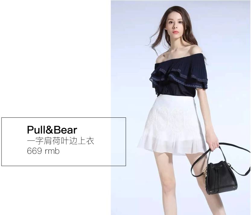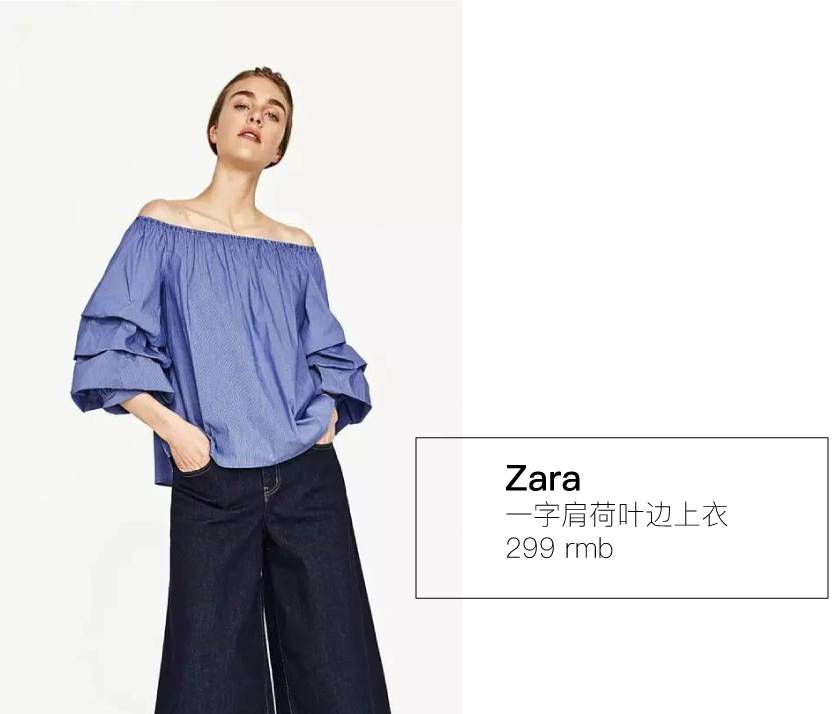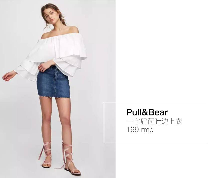 所以肩宽的宝宝们这个夏天你需要的就是一件一字肩+荷叶边上衣,但要记住不能露出太多哦~格姐都给你选好啦!