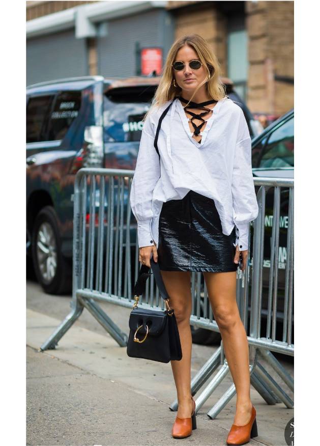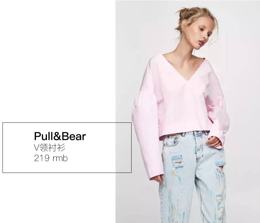 V领宽松衬衫能够让上围比较结实的姑娘线条柔和一些,看起来也更加小女人。