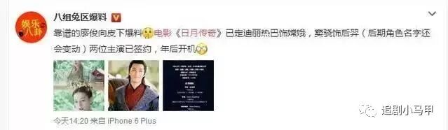 据悉,《日月传奇》已经定了男女主角,很多个大v都已经爆料会在2018年的二月份进组开拍,人气小花迪丽热巴饰演女主角,窦骁饰演男主角。
