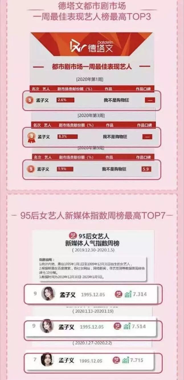 开播一路狂飙,宝藏女孩孟子义这次终于藏不住了 娱史通鉴 内地女星 2020-02-12 18:09:30 697 创作不易,用心坚持,欢迎请BaGua喝几杯爱心咖啡!打赏并支持本文 打赏并删除本文 各位宅家的小宝贝最近过得怎么样?突如其来的疫情,让很多小伙伴提前实现了“WIFI手机葛优瘫”的生活。但快递的停运,也剥夺了日常买买买拆拆拆的惊喜与快乐。对于剁手女孩来说,谁心中没有过一个购物狂的梦想呢,最好还是买买买不用担心花呗的那种。刚于湖南卫视和芒果TV收官的《我不是购物狂》,或许能代你实现这一切。95后最受关注女演员孟子义,化身sss级购物狂高杨,以可爱与实力撩倒冷面大表哥。带领追剧女孩在买买买中,学会寻求内心真正的需求和价值,体验什么是唯爱与梦想永不打折,完成从公主到灰姑娘再到女王的完美蜕变。或许也正是因为实现了9亿女孩的梦想与成长,从开播到收官,《我不是购物狂》一路狂飙,连续20天收视破1,最高收视1.5,各路大V联袂推荐。微博话题“孟子义我不是购物狂”阅读量888.5万,讨论量1.2万,剧播期间孟子义的微博粉丝增加至845万,多次上榜艺人榜95后女艺人前十,话题与口碑齐飞,圈粉无数。女主孟子义的精彩表现更是让人不禁感叹:拥有宝藏人生的女孩,也许本身就是个大宝藏啊! 01__虽然全剧以女主疯狂买买买开场,但《我不是购物狂》三观超正,剧情也是披着败家外表的反玛丽苏成长励志剧。孟子义饰演的高杨是个标准的富二代,从小娇生惯养,人生除了消费和美就没别的课题。但这样的公主,却因为父亲的破产突然沦为“三无”女孩。没钱、没依靠,没有人生经验。但这个富二代有些不一样,父亲的破产和失踪,并没有让她一蹶不振、放弃自我,而是努力找机会,让自己生存下去。一个从没坐过公车的富二代千金去坐公车,还和其他应聘者竞争同一份工作。为了求生存,软磨硬泡住进表哥严励家,成为他的房客。开启了一段寄人篱下,从"相杀"到相爱的日子。剧中的高杨,公主病十级患者,开场画风也是作到不行。但看着看着你会发现,这个女孩虽然没有生活经验但却灵到不行。落难之后,先是通过手边的线索,找到有可能帮助到自己的人。之后在对方各种洁癖恐惧症拒绝帮助的情况下,运用自己的戏精小机灵和诚恳,成功获得帮助,住进男主家。别人买买买是纯败家,但高杨却在多年败家中积累了超强的时尚感和对服装材质设计的理解。刚从家里搬出来,行李就因为自己的蠢萌被抢了,女主选择报警。别人丢东西向警察汇报的是丢了衣服还是裤子,这位小姐姐却描述样式、材质和设计。听得警察也是一头雾水,此时的高杨虽然不接地气,但却real可爱了,也是承包了全剧的笑点。虽然一开始习惯性抱有不切实际的幻想。但拼命找工作时,她像普通求职者一样,没有一点傲娇。因为对自己充满自信,没有面试邀请,就跑去强推自己。结果因为过于耿直,怼了上司的时尚品味,得罪领导被拒了。但A方案进策划部行不通,她立即开启B计划应聘销售员成为一名柜姐。虽然曾经是富二代,但高杨觉得无论是什么工作,只要是凭自己能力找到的,就是最完美的工作。工作中,她不仅业务能力一流,为顾客推荐搭配时髦又诚意十足。还敢于表达自己的时尚看法,勇于接受挑战,完成了许多别人看来根本不可能完成的工作。遇到困难时,高杨也一直保持乐观和自信,并最终凭借这份耿直坚定和实力从柜姐一路杀到策划部。一开始对她诸多不满的严励也对她刮目相看,从开始的嫌弃到主动为她介绍工作机会,再到后来组成“养眼”CP开启高甜虐狗模式。从落魄富二代到霸气富一代,高杨的一步步蜕变,就像她说的的“只要思想不滑坡,方法总比困难多”。高杨也让追剧女孩们明白,无论在什么情况下都不能放弃自我,即使生活再多变化前路再多阻碍,也要努力给自己寻找光亮重新照亮明天的路。剧中的高杨执着勇敢,而生活中的孟子义对待工作也是要求极高。孟子义是一个在台词上要求非常精准的人,有的时候不小心串词,她都会重新去梳理,直到做到对剧本完全神还原才肯罢休。《我不是购物狂》中有大量大段的台词,孟子义都坚持自己反复练习直到一字不差,并且力求把感情做到最完美真实。为了演好柜姐的角色,孟子义去逛商场,观察现实中的导购,正因为孟子义一次次地磨戏体验生活,才有了后来被演活的金牌柜姐。金牌程度,让小伙伴直呼孟子义退圈当柜姐。在高杨从大小姐到女王大人这条自我觉醒与成长的路上,孟子义的演技和用心,也润物细无声地将这种变化实现了无缝衔接。02__除了《我不是购物狂》中带给大家一个不一样的购物狂,孟子义还有很多经典记忆瞬间。《将夜》里孟子义的冷面女神官叶红鱼不仅开场惊艳,被原著粉认为是全剧最符合设定的角色之一。而且演起戏来也有如拼命三娘。在和魔宗激烈对决一场戏中,叶红鱼干净利落的打戏看得小伙伴目不暇接,激烈程度不亚于任何功夫大片。而这一段孟子义也是全真人上场。拍摄被魔宗摔出去一场戏,虽然只有短短几秒,但为了完美的效果,吊着三根绳子的孟子义被一次次摔在墙上,这才有了最后一刻的真实神还原。孟子义的叶红鱼,一身红衣,美起来是超仙锦鲤,打起来又英气十足利落潇洒,很多小伙伴因为这个很可的叶红鱼而安利这部剧。《将夜》之后,小伙伴期待续集中孟子义能将神仙叶红鱼进行到底。但出