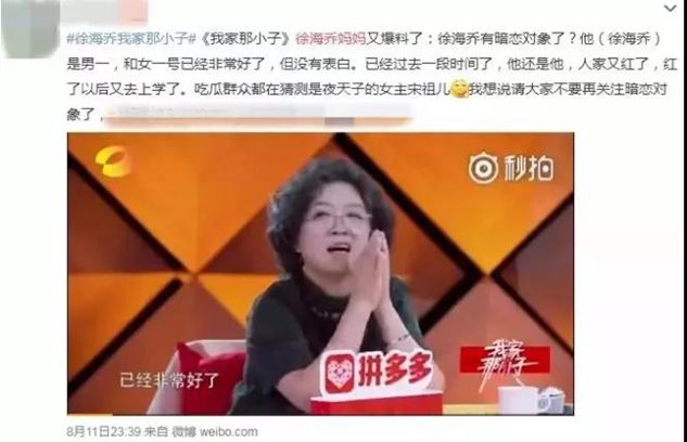 但到了和徐海乔拍《夜天子》的时候,宋祖儿和她的粉丝明显不乐意了?前段时间,在《我家那小子》里,徐海乔被自己妈妈爆出他对同剧组的某个女演员有好感,网有猜测是宋祖儿。