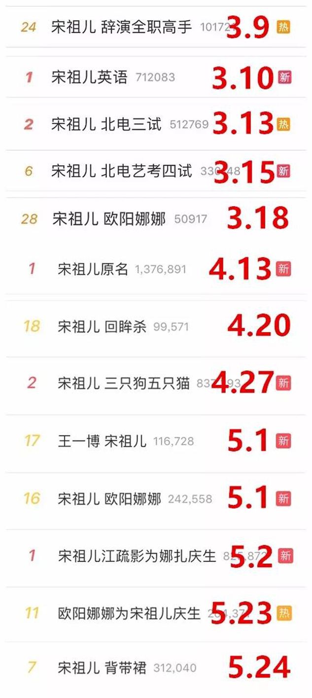 还有细心网友还贴上了宋祖儿上热搜的日期,一天两个话题的操作也是666!