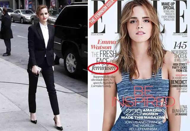 英国版《Elle》杂志从几年前起开始了“Rebranding Feminism”的活动,要求重新定义女性主义在当下时代的正确含义。最新一期杂志便是请来了不久前,刚刚在联合国发表过关于男女平等主题演讲的演员Emma Watson担任封面人物。但若仔细追究杂志的内容,你就会发现,《Elle》杂志倡导的新女性主义,无非是要缓和逆转早前女性主义和时尚界的对立关系,进而为女性主义分子扩大衣橱,为时装品牌扩展客户。这样一来,所谓的新女性主义,无异是被时尚界绑架作为噱头,来替广告商们发声。