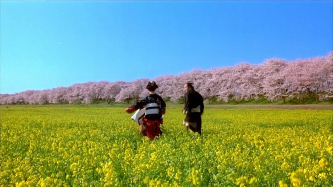 最后,当真正爱着清叶的清次带领清叶出逃,两人来到了郊外。粉白的樱花,湛蓝的天空,金黄色的田野,粉色调的大自然才显得真实,而充斥着高饱和色的玉菊屋则是虚幻的存在。