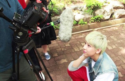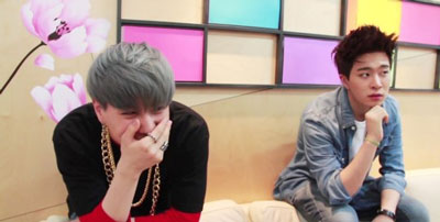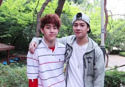 本人崔荣宰正在拍摄帅气的照片,但是~~~难道是我的错觉吗?好像旁边的宥谦一直在嘲笑我。我现在可不是新人了!已经发行第二张专辑了!本人也越来越帅了!