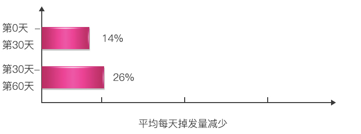 服用30天,平均每天掉发量减少14%,服用60天,平均每天掉发量减少26%。