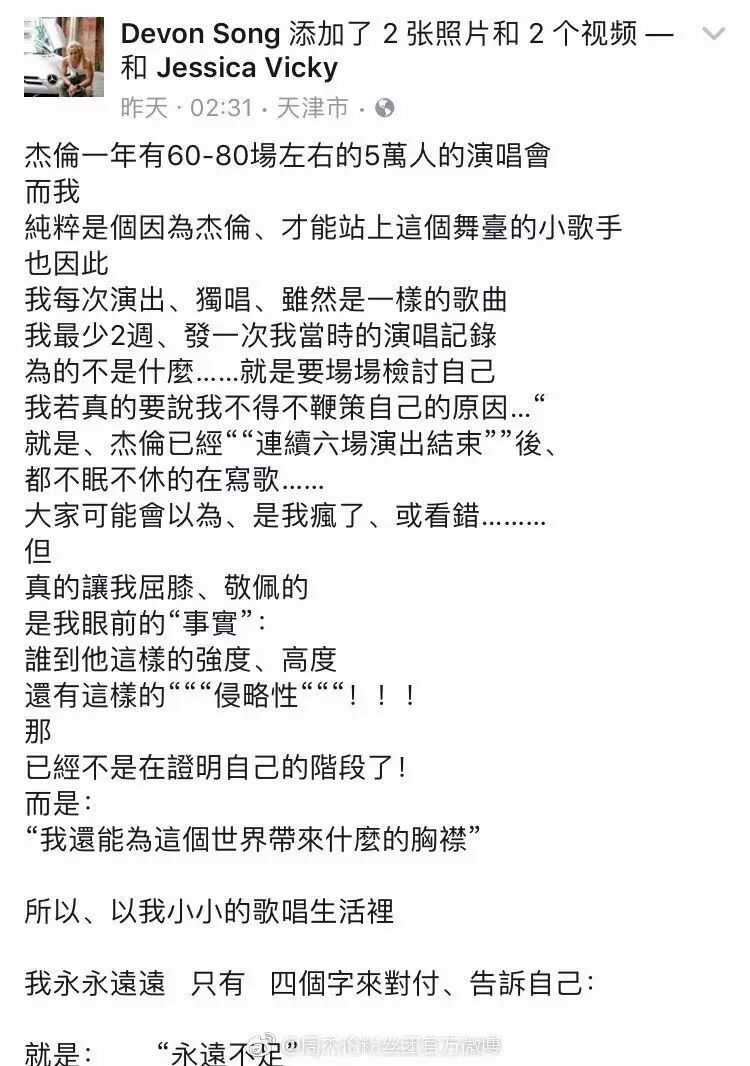 另外据周杰伦的好友南拳妈妈弹头透露,周杰伦近六场演唱会之后都是不眠不休的写歌,目前新专辑已经完成一半,有望年底推出,大家期待一下新专辑哦!
