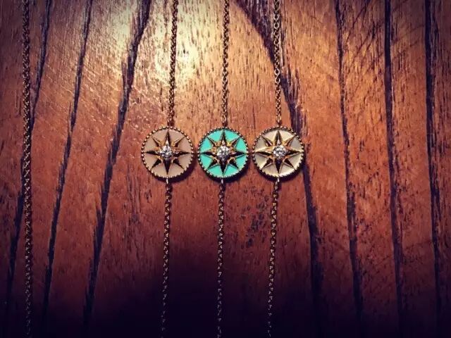 “我的初衷是设计一款小巧的图形吊坠。还有什么比圆章吊坠更有寓意?”Victoire解释道。Rose des Vents系列于2015年上市伊始便推出由白金和珍珠母贝、黄金和青金石、绿松石和珍珠母贝、玫瑰金和缟玛瑙及粉红色蛋白石打造的多款项链和手链。